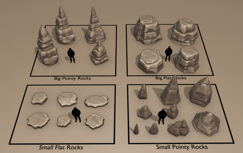When I create environments I often end up having big zoo files where I see many of my pieces at once. It is good to be able to see many assets together, but I often end up struggling to remember what asset belongs to what set. I try organizing them by collections, but the pure visual chaos disorients me. Then I saw this video and I just knew what I had to do.