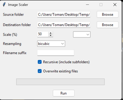 Instead of directly exporting to the Source folder I am exporting all my assets in their corresponding folder inside the Assets directory at the highest possible resolution. And when I want to export my images to the Source I just run the app and set the scale I want the images to be in. When everything is hooked on the engine side all I have to do to re-scale all images is to start the app, check the root folder of both directories and click “run”. I have a fully replaced images with the correct resolution. If I need to change the resolution (up or down) I just re-run the software. It takes no time at all. So that way when I export my game for PC or higher targets I set the resolution to 100% and when I export for mobile – 25%.